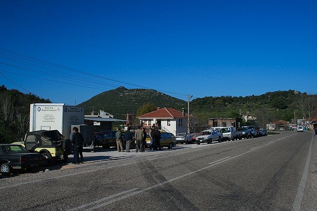 09.00 Apart from setting up nothing much has happened yet. The air of expectation among the crowd has become more subdued and some people further down the list have retired to their cars to catch up on their sleep while they wait. When dealing with official administrative tasks the average Turk in this area seems to have an infinite capacity for waiting. There are probably people in the cities and towns that are impatient but around my village at least there never seems to be a rush. At traffic lights however the story is completely different. Any gap is used to squeeze to the front and line up four or five abreast.