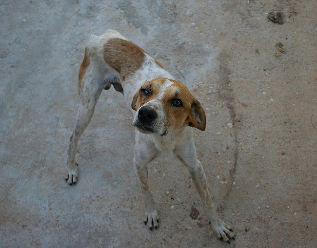 Skinny has been coming to play with my dogs for about a year now I think. Shortly after I first saw him he had an infection in his right eye and although the vet had a look at him it was too late and he lost his sight in that eye. Another time he was taken to the vet in Fethiye by another of the Brits living in the village and neutered. He was nothing but skin and bone in those days, I’d been giving him food most days and recently he was starting to look a bit better, he was also starting to be happy. He played nicely with my dogs and came bounding happily when he saw me and at last seemed to be enjoying life. Well that’s all ended now, what a shame. I’ll go and tell the neighbour later on today but I don’t suppose there’ll be much sadness there. Dogs seem to come and go around here, there are only a few that last more than a couple of years.