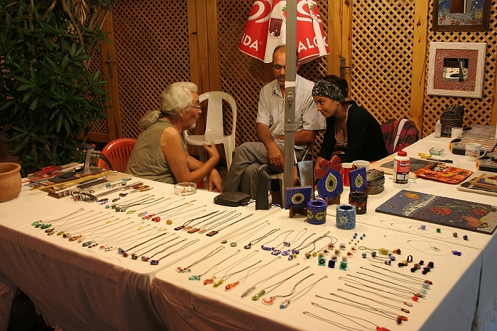 This guy made glass pendants and other jewellery. You can see his tools at the end of the bench, he made things while you watch.