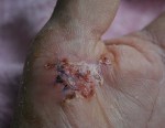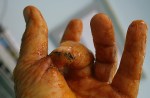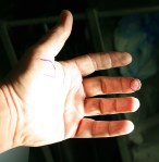 I mentioned before that I was going to have an operation on my hand to reconstruct the middle finger of my left hand. Well a couple of weeks ago my friend Paul took me to Antalya for the first operation because I didn’t expect to be able to drive after it. The morning was freezing and so was the operating theatre, I had to wear one of those gowns that does up with poppers at the back which takes away the last shred of dignity you thought you had. The essence of the procedure was to create a flap on the base of my thumb that was stitched to the end of the finger. This flap would become a graft covering the area where flesh was torn off and would form a new fingerprint pad eventually. Here are some pictures, don’t click on the pictures unless you are happy with seeing the full size gory detail.