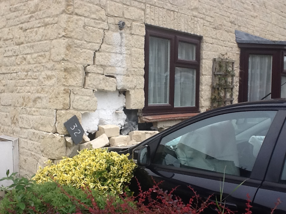 Apparently a lady driver of 81 years of age had started her car in gear and because it started moving had stamped hard on what she though was the brake…..clearly it wasn’t.