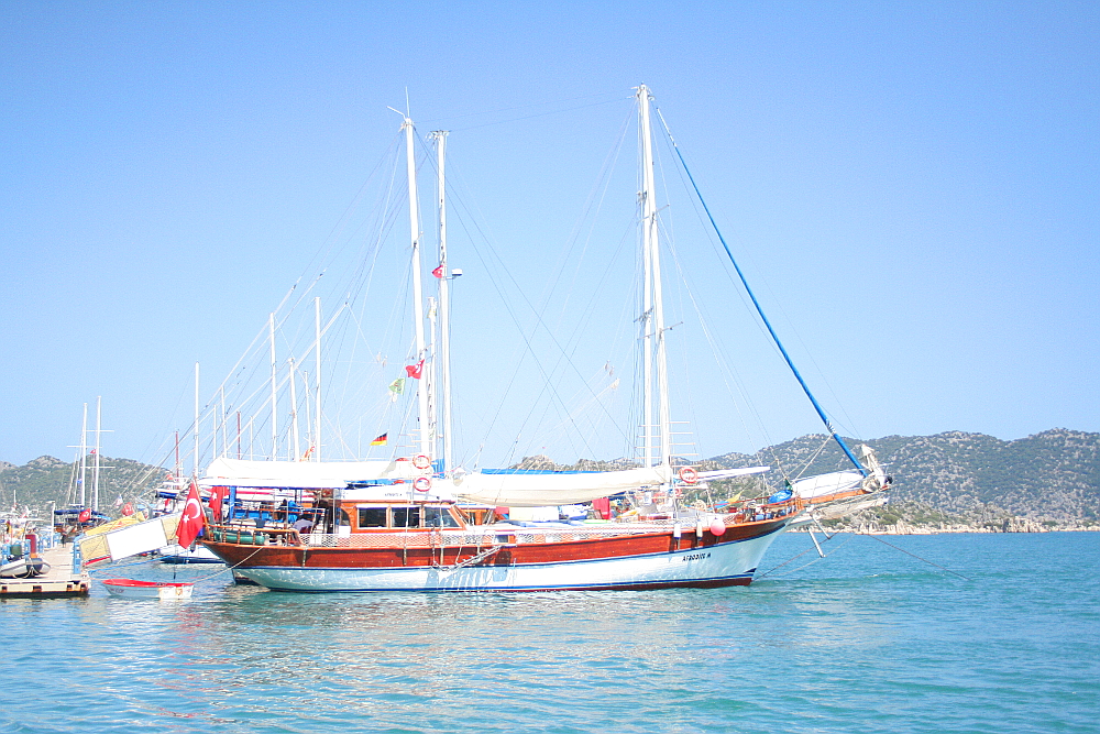 Had lunch aboard a friend’s gulet (traditional wooden cruising boat) in the harbour at Üçağız/Kekova a couple of weeks ago. Very nice relaxing time, his paying guests were all out on a trip and it gave him time for a little socialising. It is a six cabin gulet, very comfortable inside.