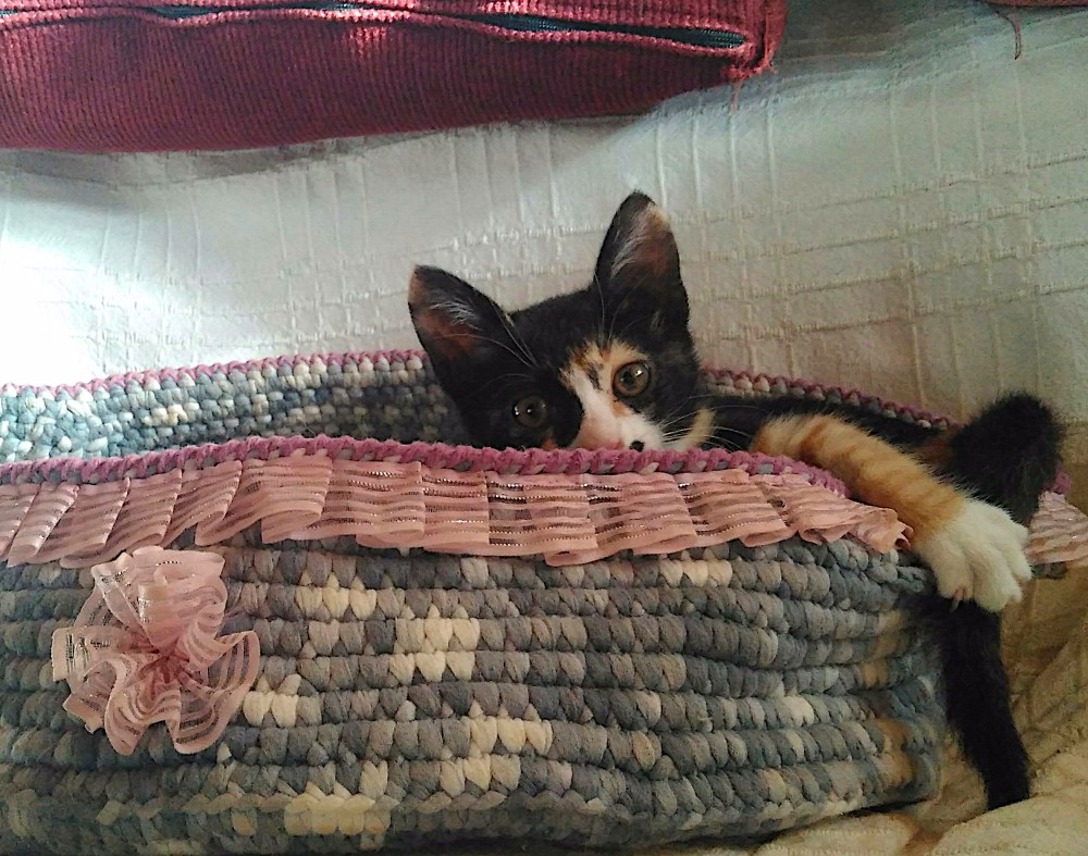 Cute little thing with very nice colour marking. It had been named Mayıs because she found it in May. There are a lot of unwanted or unplanned dog and cat births around here that considerable effort is made to try to control. A very difficult task for local veterinarians made harder by the natural wish of the local people to let nature be nature. Consequently there are always lots of puppies and kittens who are being put up for adoption and I find it quite difficult to refuse sometimes. This kitten, however, caught my attention and I relented. She even came with her own bed. She’s a very exuberant little thing and has caused me a number of scratches and wounds and reminded me that I cannot leave things lying around if I expect to ever find them again. The dogs are trying to avoid her too, even big Wolfie will go out of his way to avoid walking within talon’s reach of her.