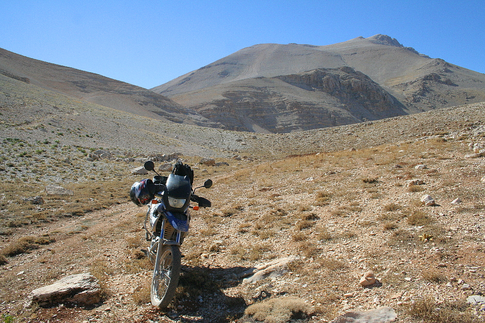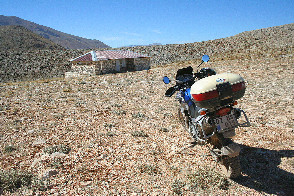 Bey Dağ is a 3070 metre high mountain in the Taurus range up near the Elmalı pass on the way north from here. Google Earth shows lots of little tracks, dirt roads really, criss-crossing the lower slopes with cultivated fields, some small buildings and other man-made features. Should be fun eh? And maybe I could ride close enough to get to the top?