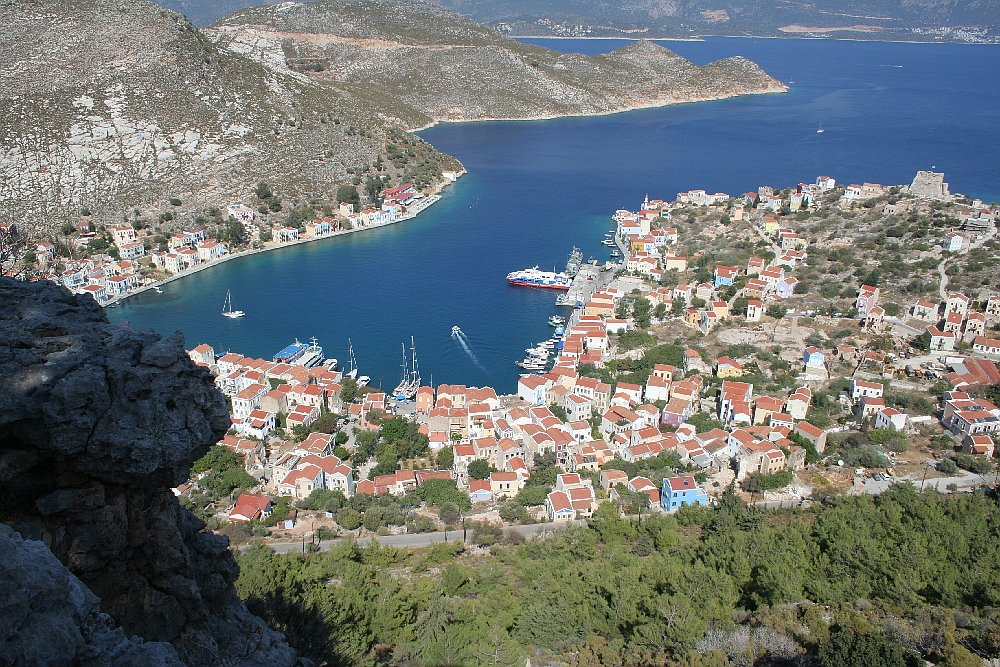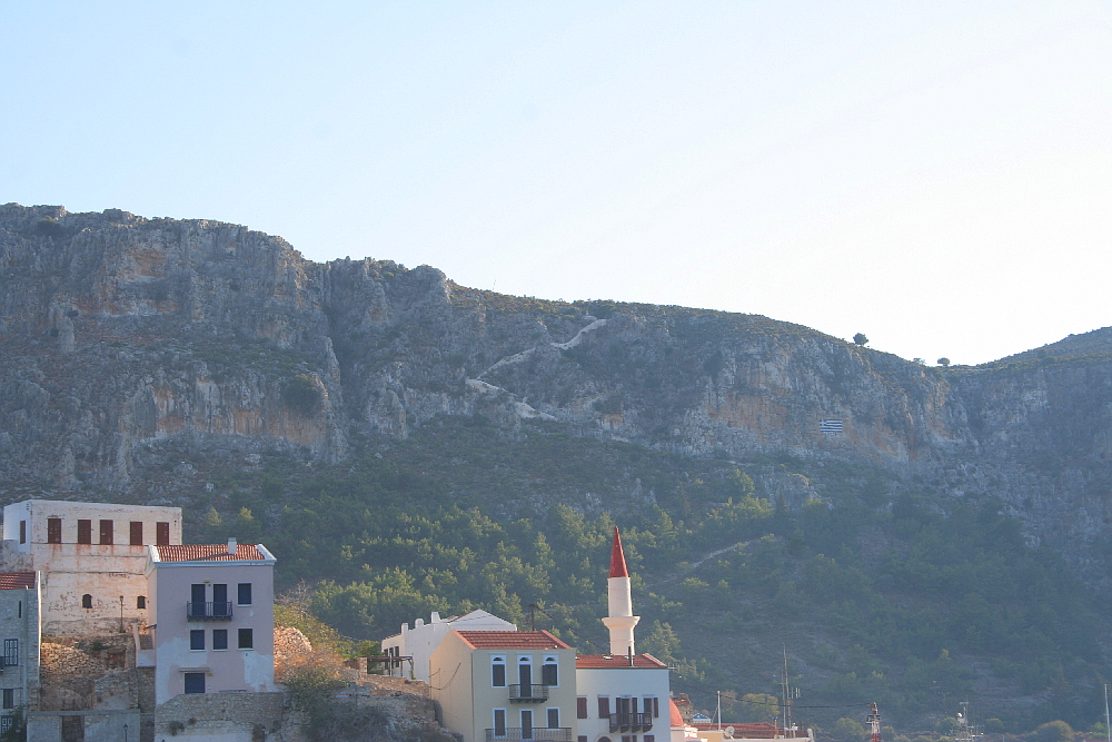 The two boats that go to Meis were both pretty full and it seemed to take an age waiting to be processed through the Greek immigration office but eventually we were free to roam the island. First was a bit of breakfast and a coffee then Bob and I set off up the steps. The first snag is climbing out of the town to get to the stairway and we were both breathing deeply before we set foot on step number one.