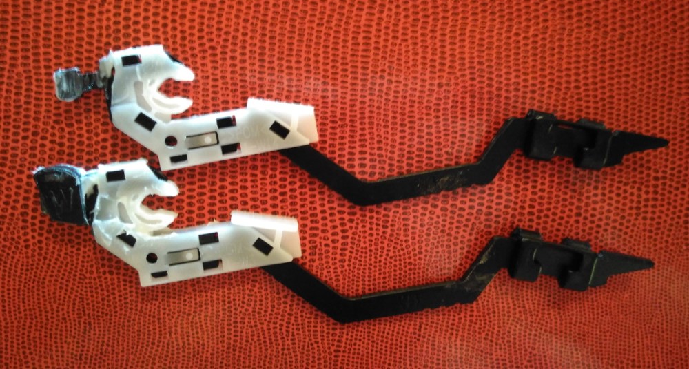 With all the component parts spread around my kitchen it soon became obvious what the problem was. In an electronic piano with “hammer action” to mimic the feel of a real piano the plastic keys, both white and black, act upon a hammer bar to operate the switches controlling the electronics. On this particular model the hammer bar, made of black anodised steel, is fitted into a white nylon mount that rotates through a few degrees when the key is pressed and actuates the switches. There are no springs involved which surprised me a bit, the resistance felt when hitting the key is controlled by the length and weight of the hammer arm, the whole action is then returned to it’s normal resting position by gravity, just like a real piano.